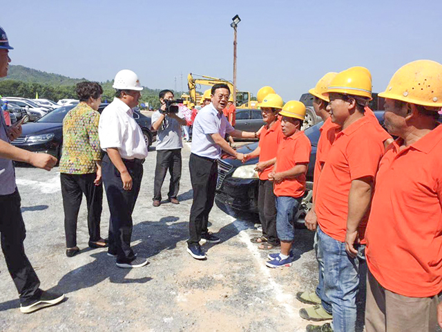 上圖是縣委副書記、縣長危巖,縣人大常委會(huì)主任陳曉琴在現(xiàn)場慰問建設(shè)工人。